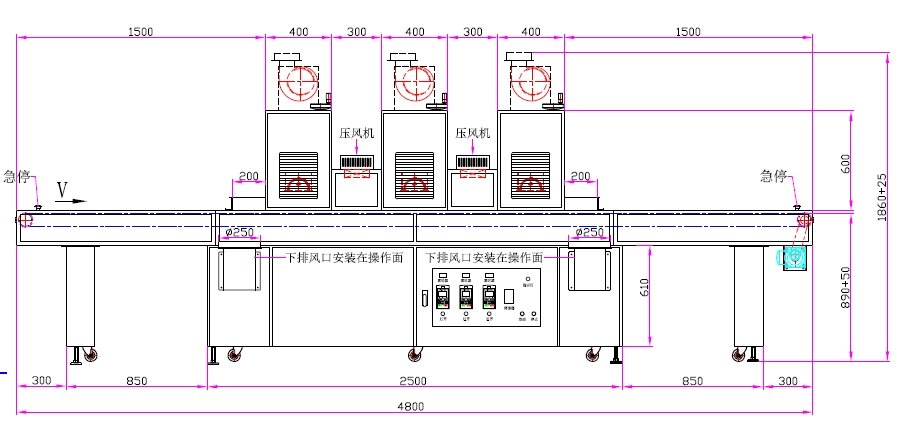 1、UV燈功率:12kw3支(UV鹵素燈)