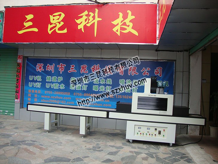 這是一種傳送式UV固化裝置,廣泛用于網版印刷、平板印刷、凸版印刷、自粘商標、金屬銘牌、KT板、玻璃陶瓷、電子零件、單面電路板等基材上負責制晶體冰花、磨砂、水晶寶石、七彩凸油等特殊效果。手機外殼、光盤、薄膜開關、電子塑膠外殼UV表面漆涂裝;各種UV涂料、IMD注塑產品油墨固化;用于在固化電子元件、液晶片、端子膠封、手機組件粘合、塑膠組件粘合及LCD等;該裝置體積小,重量輕,制作精良,移動方便。