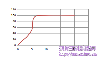 從圖中我們可以看出,固化并非是勻速的,剛開始固化稍慢,大約5s的時候,反應(yīng)速度加快,大概在7s左右時,固化完全。這可能是因為剛開始碳碳雙鍵在打開時需要吸收部分能量,而交聯(lián)過程相對較快。